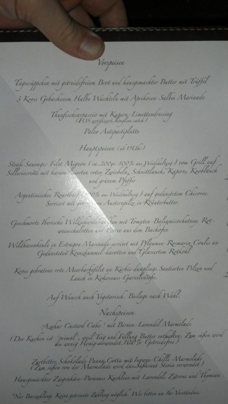 Here is the menu in German (click to enlarge). The wait staff was very helpful with the translations.